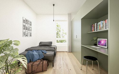 Jetzt erhält das Haus eine klare Linie – und etwas Geschichte zurück: Vom Erdgeschoss bis ins zweite Obergeschoss entstehen identisch strukturierte Wohnungen, ideal für (erfahrene) Singles, Studierende oder alle, die urban und effizient wohnen möchten. Im Sockelgeschoss schafft die Umnutzung der früheren Garagen im Sinne der inneren Verdichtung zusätzlichen Wohnraum. Aussen wird die Vorgartensituation entlang der Strasse wiederhergestellt, die Fassade im Sockelgeschoss erinnert künftig an die Ladengeschichte des Hauses und eine neue Balkonvorbaute gibt den Wohnungen den bisher fehlenden Aussenraum.
